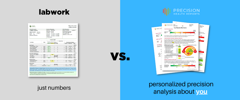 We don’t sell one-off labs. They don’t give sufficient context. Precision Health Reports integrates outcome-proven biomarkers with age, sex, ethnicity, and clinical history to generate a personalized risk profile and clear next-step guidance.