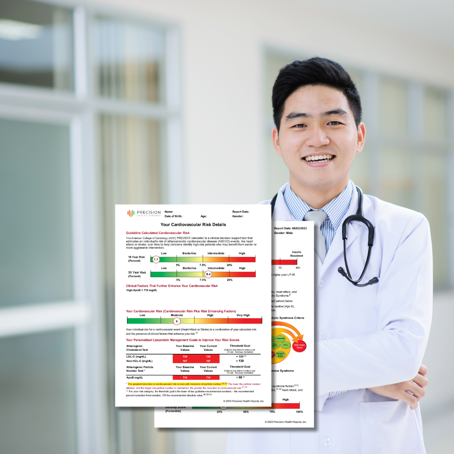 Precision Health Reports isn’t another lab panel. It’s a unique interpretation engine that combines outcome-proven biomarkers, relevant clinical history, personal factors, and guidelines into a single standard of care that you can trust.